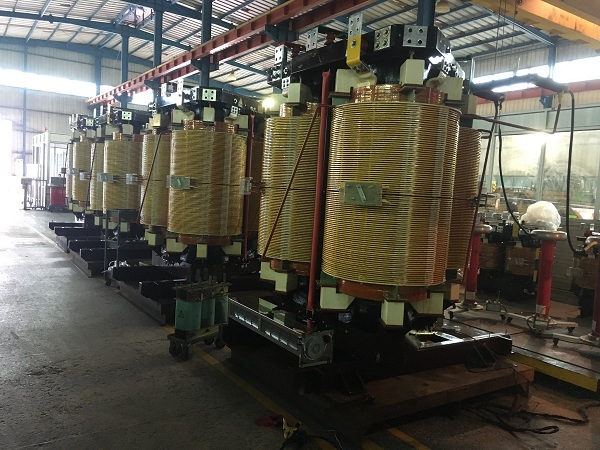 四台试验期间的33/0.71kV,4MW敞开式立体卷铁心干式变压器