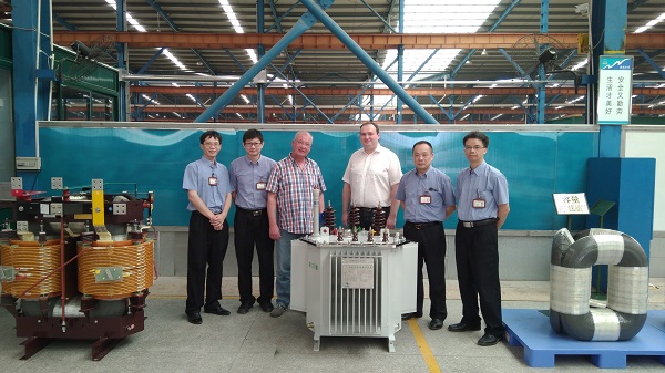 世界首创非晶合金立体卷铁心油变及敞开干变前双方合影留念