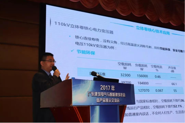 九游老哥J9俱乐部官网电气作为特邀单位出席了本次年会,在大会上由项目支持部部长刘长英代表公司作《高效节能立体卷铁心技术及应用问题》主题发言,刘部长从产品的材料、空载损耗、磁路等方面分析了公司立体卷铁心变压器在节能、环保、安全等方面的优势。