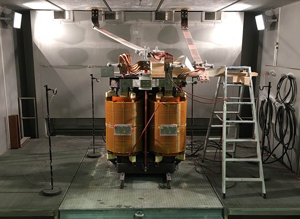 2016年12月2日,13.2/0.48kV,1500kVA敞开干变(2016年8月6日已发运)在德国SGB公司试验区内顺利通过所有试验,图为试验现场