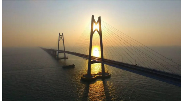 港珠澳大桥跨越伶仃洋,东接香港,西接广东珠海和澳门,是粤港澳三地首次合作共建的超大型跨海交通工程,主体工程集桥、岛、隧于一体,它是世界最长的跨海大桥,总长约55公里,120年设计使用寿命。