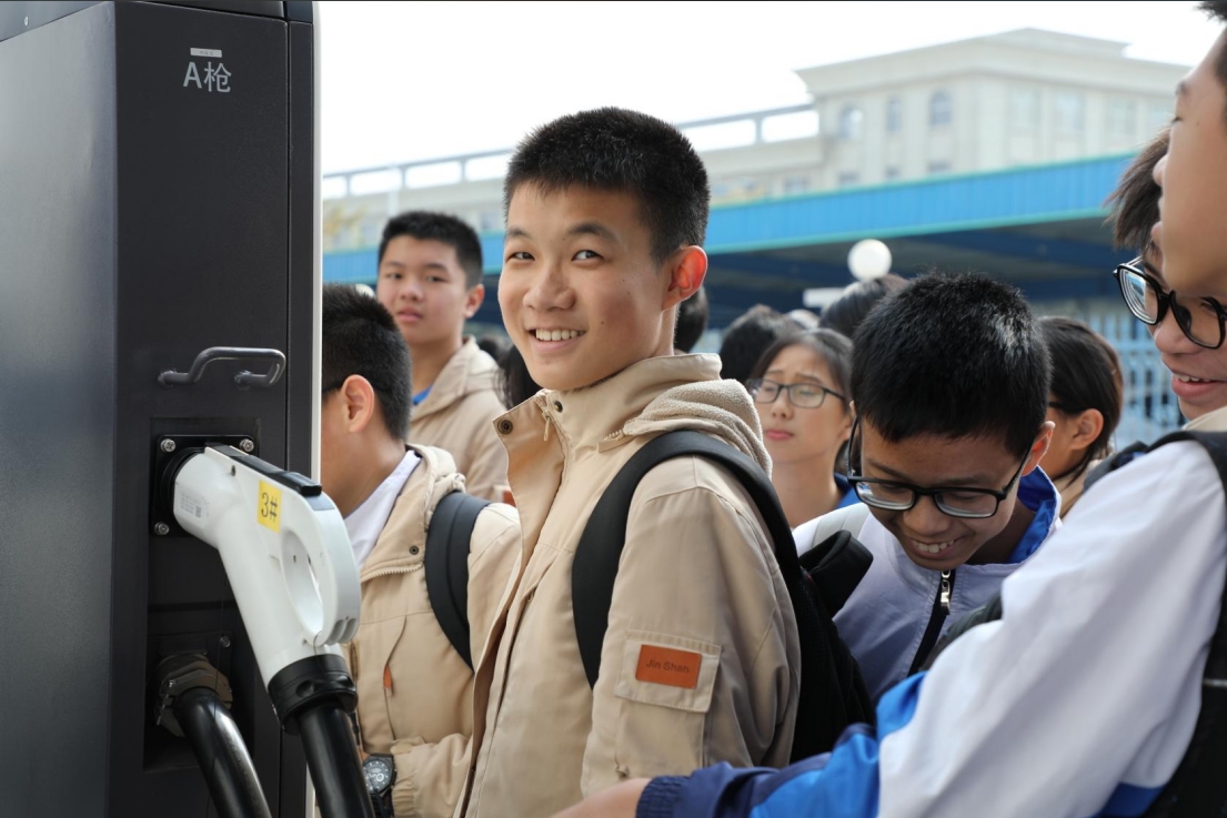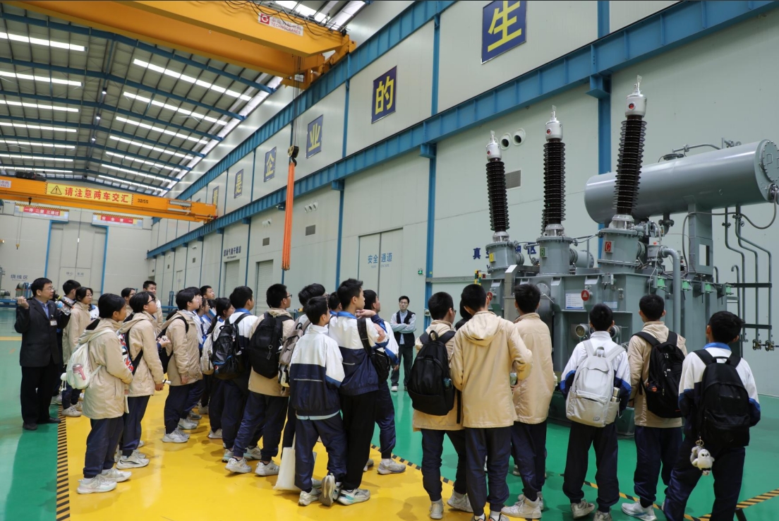 随着技术讲解员的引领,学生们参观解了了立体卷铁心变压器和相关节能立体卷铁心技术,以及智能箱式变电站、智能集成一体式汽车充电站等行业前沿产品。从电学、磁学到热力学,每一个课堂上的理论概念都被巧妙地融入生动的实例中,让原本枯燥的理论变得鲜活起来。学生们听得津津有味,不时提出自己的疑问和见解,积极参与科普活动的有奖竞答环节,现场互动热烈。同学们在此次活动中收获了宝贵的科学技术知识,纷纷感叹道:"这是我参加过最有意义的一次科普实践活动!"