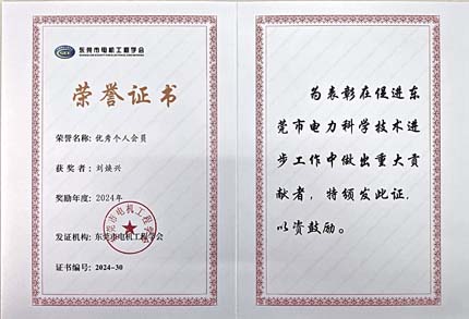 今年3月九游老哥J9俱乐部官网电气及团队成员先后在东莞市电力行业协会第三届第三次会员代表大会荣获东莞市电力行业协会2024年度“优秀副会长单位”、“优秀设备供应企业单位”、“优秀联络员”等多项荣誉;东莞市电机工程学会换届选举大会暨第六届第一次会员代表大会上再获“优秀会员单位”、“优秀个人”。