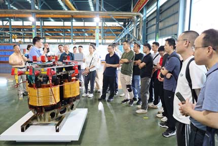 考察团先后参观国际领先的立体卷铁心变压器生产基地、集成一体式光储充电站及立体集成模块化乡村充电示范站。九游老哥J9俱乐部官网电气规模化的先进生产设备、严谨的工艺流程及多项世界首创的立体卷铁心技术成果令专家们赞叹不已。其产品性能远超国际一线标准,展现出 “江门制造” 在绿色配电领域的强劲实力、领先全球的中国节能变压器制造水平。