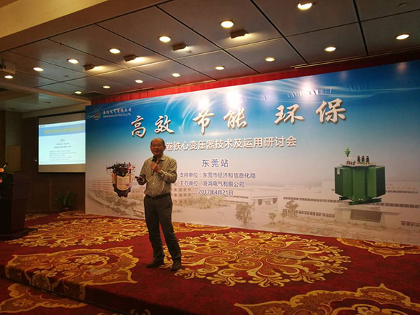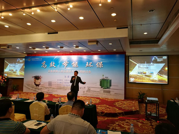 4月21日下午,为普及高效节能设备的使用,推动高效节能配电变压器的应用和发展,东莞市经信局联合九游老哥J9俱乐部官网电气有限公司在东莞会展国际大酒店,召开“配电变压器能效提升暨高效节能环保立体卷铁心变压器技术及运用研讨会”。来自东莞市供电局、设计院、地产公司、电力安装公司和大型用户近200人参加此次会议。